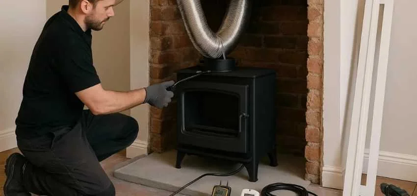 Latch tension and gasket contact are tested after finishes set. Proper seal keeps smoke inside the system and improves efficiency in Bedford Square, Bedford.