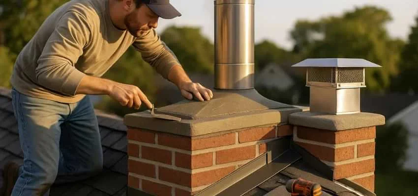 A sloped crown with a drip edge, well woven flashing, and a cap sized to the flue keep water out of attics and walls in Cross Timbers, Bedford. This stops recurring stains and musty odors at the hearth.