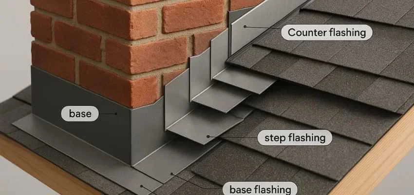 Step flashing tucks under each shingle course along the chimney sides. Counterflashing locks into mortar joints and overlaps those steps. In Parc Place Retirement, Bedford the overlap must be precise to block wind-driven rain. We avoid shortcuts like exposed face-nailing that can loosen and leak later.