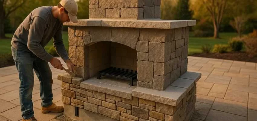 Firebox, throat, and smoke chamber come first, followed by lintels and face materials. Joints align, corners stay true, and transitions support steady draft. In Realistic, Bedford we stage materials neatly and keep work zones orderly start to finish.