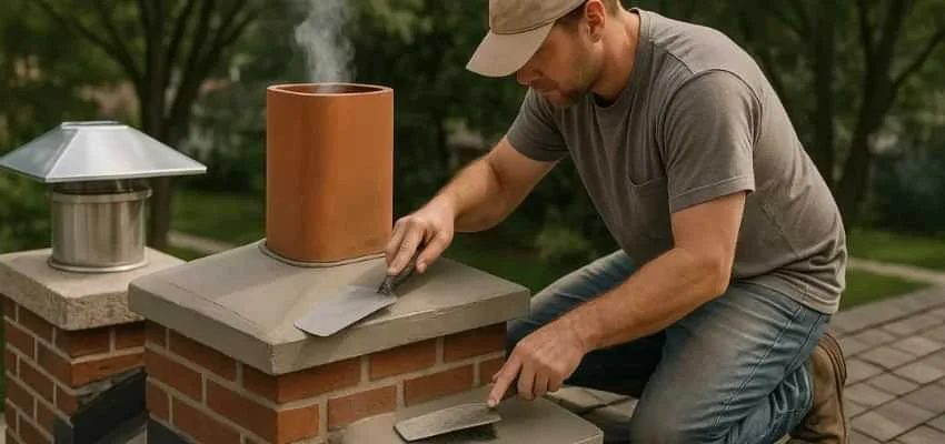 For masonry crowns in Timber View Estates, Bedford, we form, reinforce, and finish the slab above the flue with the right overhang. For specialized tops or multiple flues, we size each opening precisely so expansion and heat do not create new fractures.